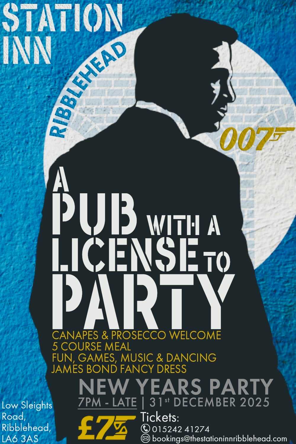 Join us at The Station Inn on 31st December 2024 for our James Bond themed New Years Extravaganza (yes we have got fed up waiting for the next film to!!). Featuring a 5 course meal; games and music. Dress up as James Bond; Blofeld; Bambi; Thumper or Pussy Galore and be in with a chance of winning a prize for the best dressed. Most importantly bring with you good cheer and merriment and a fabulous evening is guaranteed.