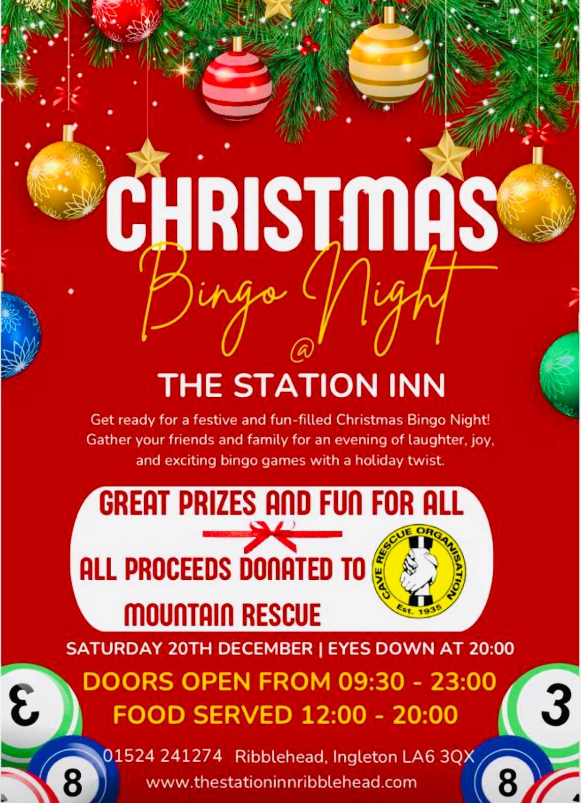 By 20 December all your Christmas prep should be done - so why not get out and enjoy a festive night of Bingo at The Station Inn. Roaring fires; beautiful decorations and festive food and ales.