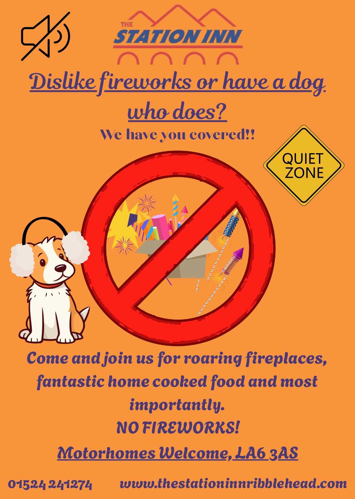 We dont have fireworks at The Station Inn and being as remote as we are we have no neighbours either. So if you want to some time away why not come and stay and enjoy fine food; warm fires; drinks and of course "the absence of bangs"!!