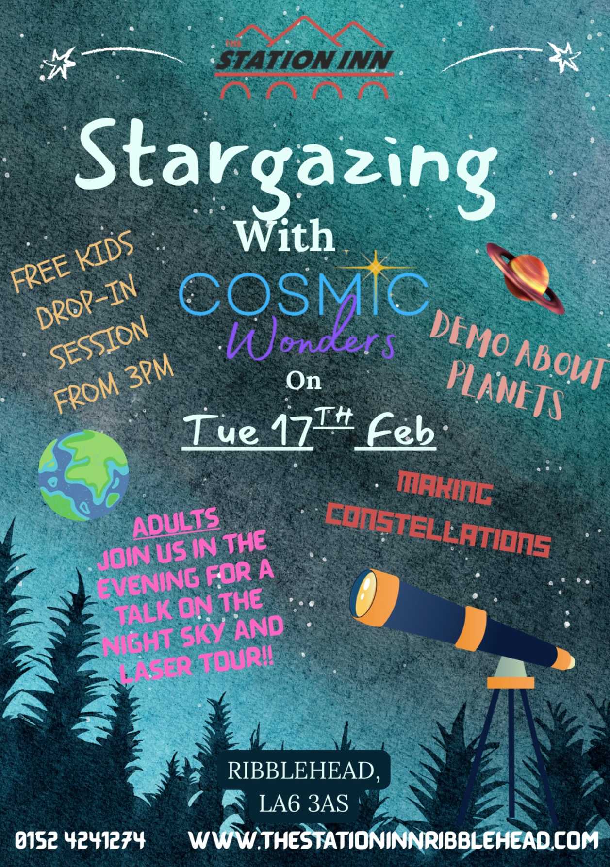 Come and join our astronomer "Cosmic Wonders" for an afternoon / evening of spotting shooting stars in the inky sky above the Station Inn.